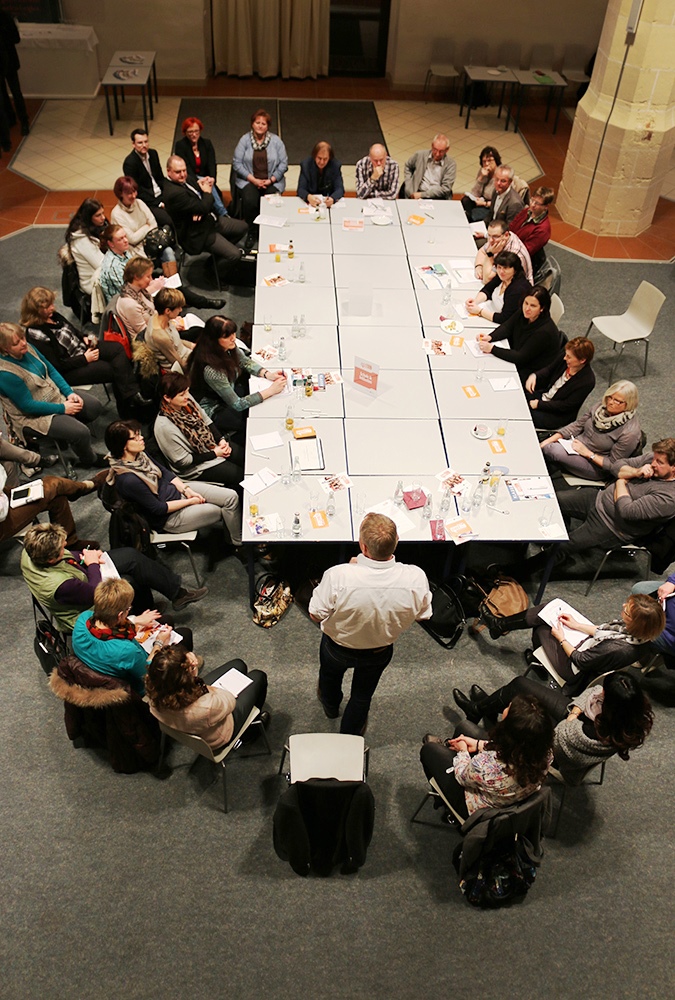 Der Landrat ging noch weiter: Der Freistaat müsse aktiv etwas tun, um Lehrer aufs Land zu bekommen – und forderte angesichts des gegenüberliegenden Brandenburgs ernsthaftes Nachdenken über den Beamtenstatus. Ministerin Kurth, wie immer sehr offen, aber auch diplomatisch, antwortete, dass dieses Nachdenken auch in Dresden längst kein Tabu mehr sei. Stimmungsvoll, aber konstruktiv, ging es diesmal in der Runde »Schulen im ländlichen Raum« mit drei Frauen und zwölf Männern zu: Auch hier konkrete Forderungen: Früher, in den Neunzigern, habe man – je nach Kassenlage – jährlich über den maximalen Klassenteiler gestritten. Nun sei dieser bei 28, aber eigentlich sei 26 das leistbare Maximum. Mit Vehemenz wurde auch auf die Wiedereinführung der Klassenleiterstunde gedrungen.